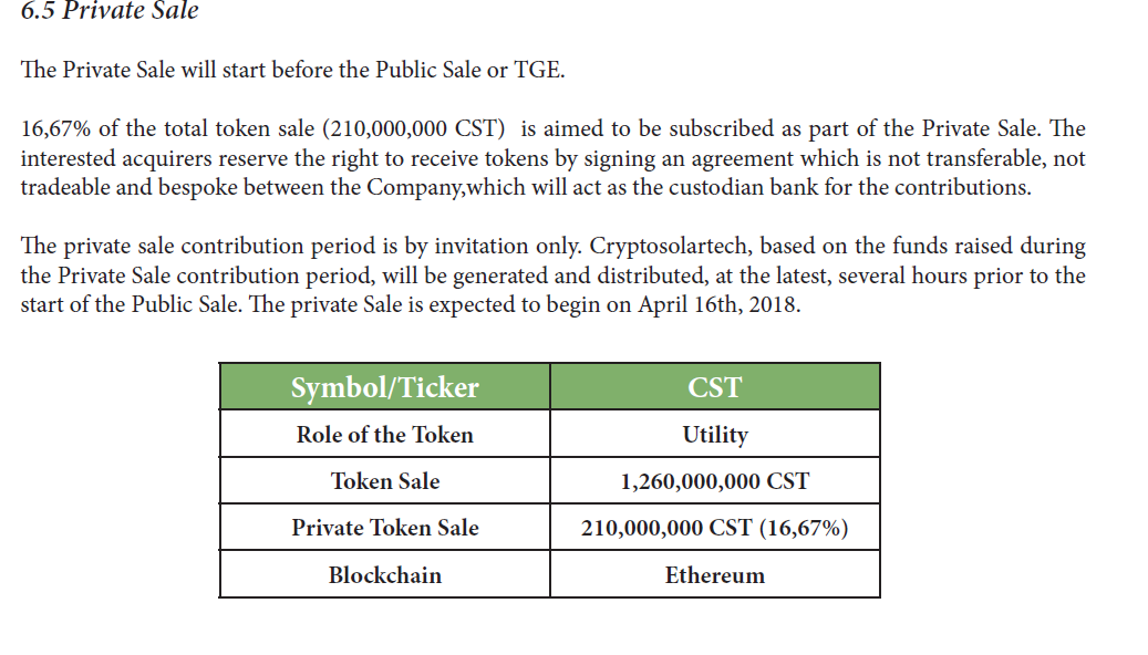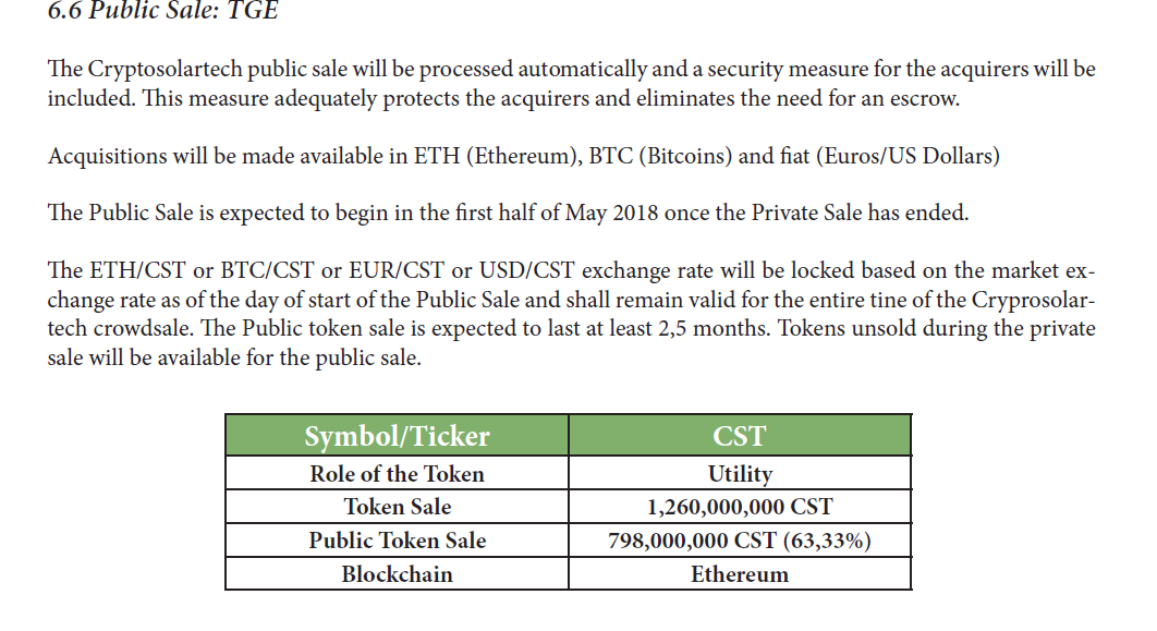 The initial coin offering knows as the utility token of Cryptosolar Tech is sundivided into three main part shown below: