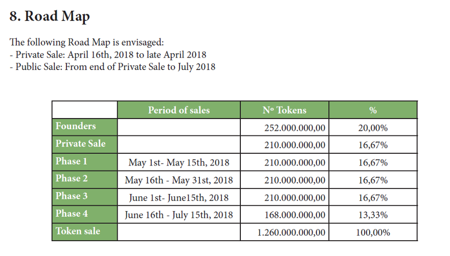Their Token Sale and the Token Allocation will be structured as following:
